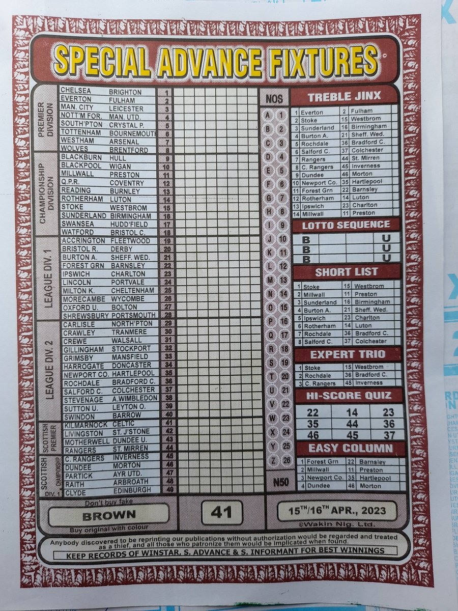 Week 41 Right-On Football Fixtures UK Pool Banker Pair